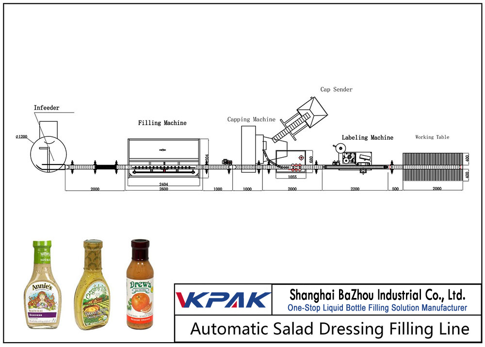 - Ова автоматска линија за полнење со облекување салата доаѓа со сè што ви треба за да ја поставите салатата за обложување во шишиња за обложување и да работи. Тој е дизајниран да шиши 30-60 шишиња во минута во зависност од вискозноста на производот. Започнете го вашиот проект денес со пополнување на образецот подолу!